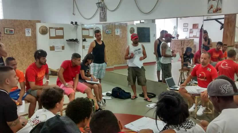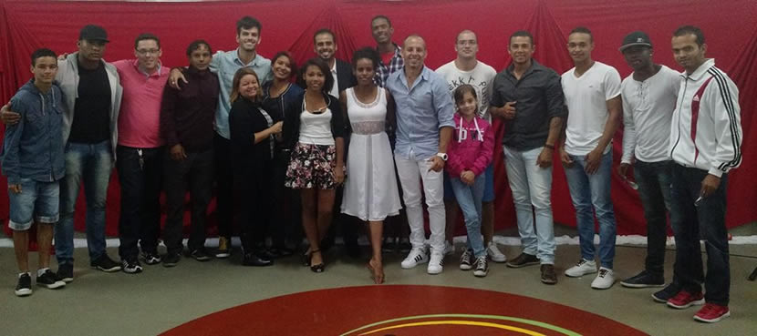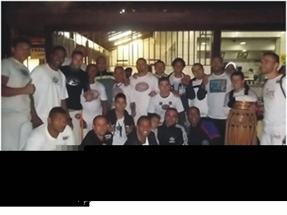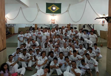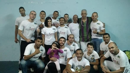 Galera cheia de energia, valeu a recepção M. Senzala / M. Pelezinho / Prof. Rino / Prof. Chorão / Prof. Beira Mar / Prof. Guerreira / Prof. Santana / Monitor Macarrão / Monitor Tatão / Monitor Barba Branca / Graduados / Alunos Grupo União de Raças / Dendê Maruo / Oficina