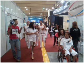 os alunos e mães na apresentação da REATECH feira do setor especializado em inclusão.