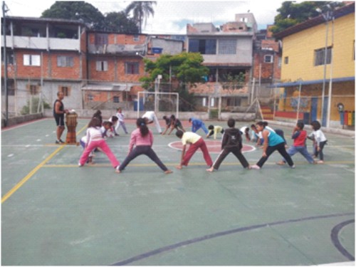 Ação: Atividade releitura - "O movimento e a consciência social" Capoeira mais que um meio de desenvolvimento sócio educativo, mas sim um fim de desenvolvimento integral. Autores: Julia Vasconcelos/Izabel Lopes/Natasha Tavares/Lucas Lima/Ryan Moraes/Niria Matos/Andreza de Souza/Izadora Santos/Paulo Henrique Lessa/Carlos Eduardo/Selene Passos